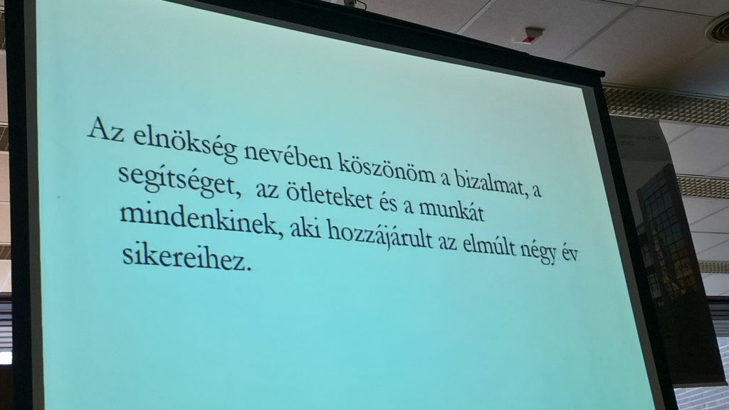 A kötelező lépéseket követően (jegyzőkönyv vezető személye stb.) a leköszönő elnökség nevében az elnök foglalta össze az elmúlt négy év legfontosabb eseményeit. Természetesen egy négy éves ciklus összefoglalására nem elegendő 20 perc, de a gyors áttekintés elegendő volt, hiszen a munkát közösen végeztük.
