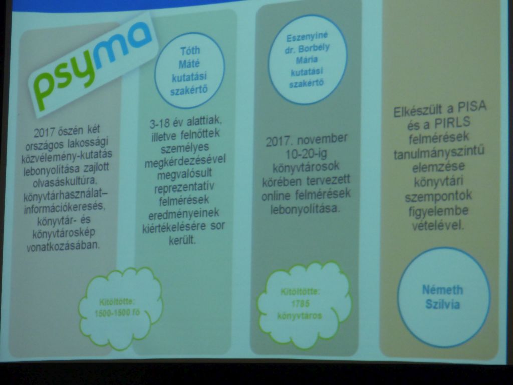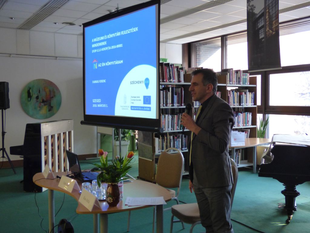 Jelenleg az országban két nagy a könyvtárakat is érintő projekt zajlik. Ezek közül kifejezetten könyvtári Az én könyvtáram projekt. Csongrád megyében már hallhattak a kollégák erről a programról, de más körben, más plénum előtt és rövidebben. Ma a Somogyi-könyvtárba érkező közel 100 kolléga ismerhette meg a projektet, illetve az eddigi eredményeket, a nemrégiben lezajlott olvasási szokásokkal kapcsolatos kutatás eredményeit, tanulságait. A három előadó – Farkas Ferenc, Tóth Judit és Kiss Attila -egymást kiegészítve mutatta be a Csongrád megyei könyvtárosoknak, hogy mi történt eddig és még mi várható a könyvtárak világában.