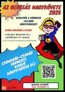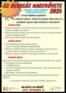 Idén is biztatunk tehát benneteket, hogy jelöljetek a 2021 óta minden évben átadásra kerülő Az olvasás nagykövete – Csongrád-Csanád vármegye kiváló könyvtárosa díjra kollégákat. Tudjátok, az elismeréssel minden évben egy olyan könyvtáros kolléga munkáját szeretnénk megköszönni, aki hosszabb időn át kiemelkedő szakmai tevékenységet nyújtott, élen járt a település könyvtári kultúrájának fejlesztésében, szakmai szolgáltatásainak korszerűsítésében.