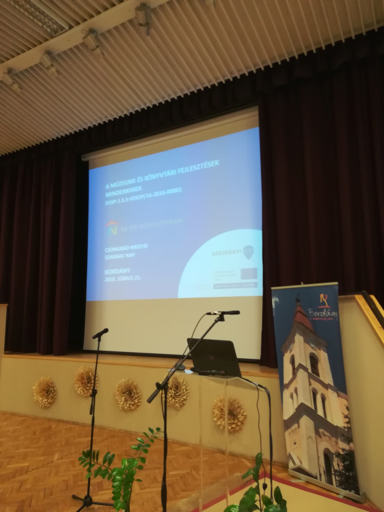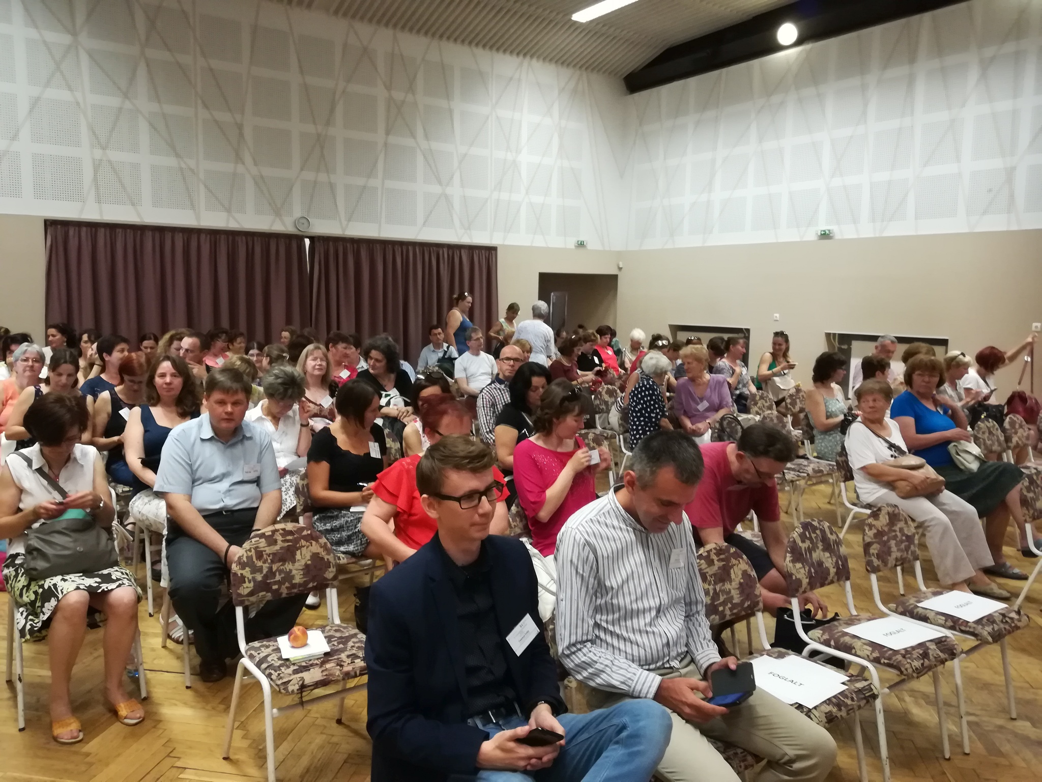 A szakmai napra a légkondicionált nagyteremben került sor. Nagyon fontos ez, hiszen már szinte az is hagyomány, hogy a Csongrád Megyei Könyvtárosnapkor hőség van. Nem volt ez másképp most sem, de ezen segítettek a helyiek.