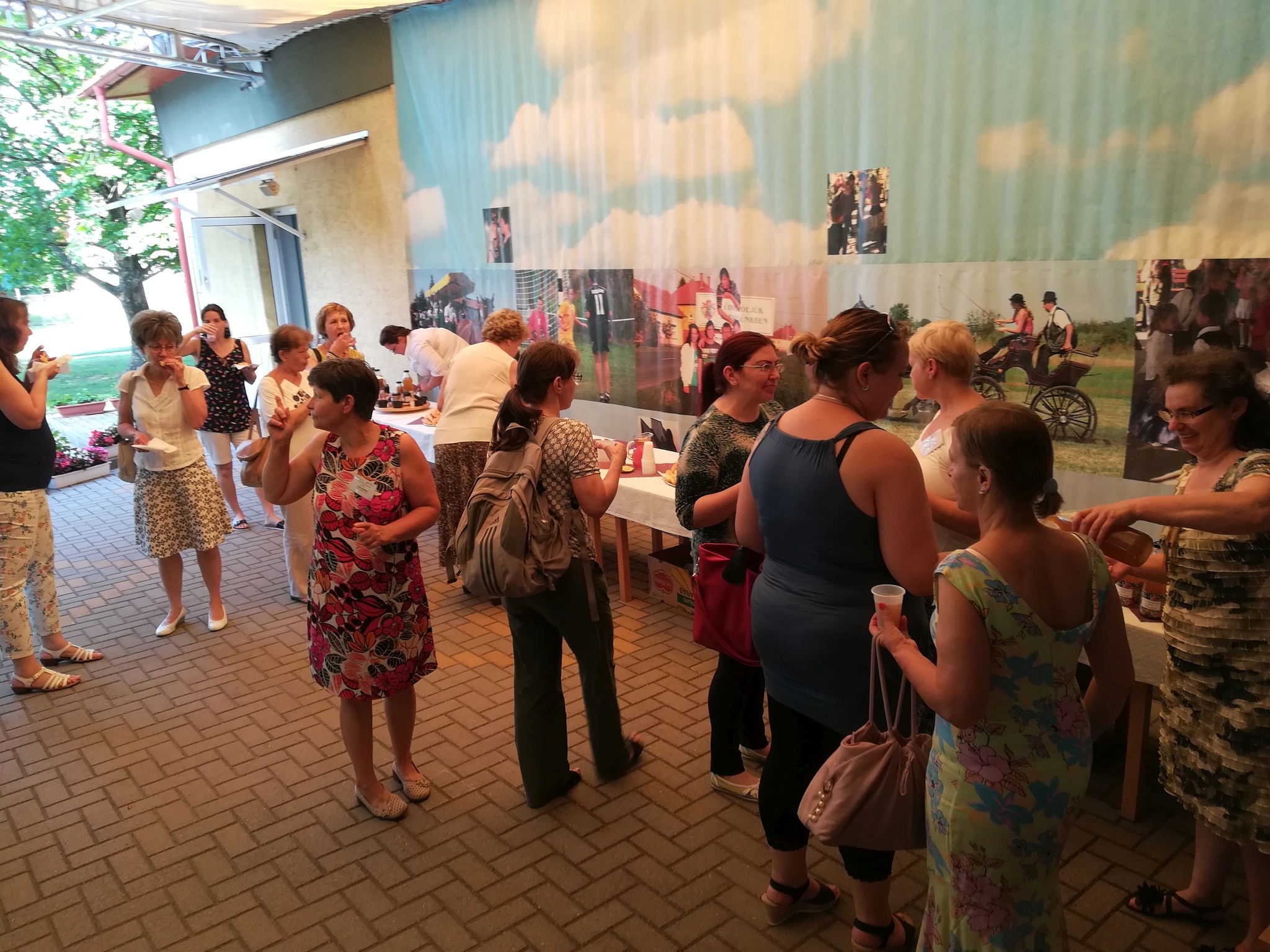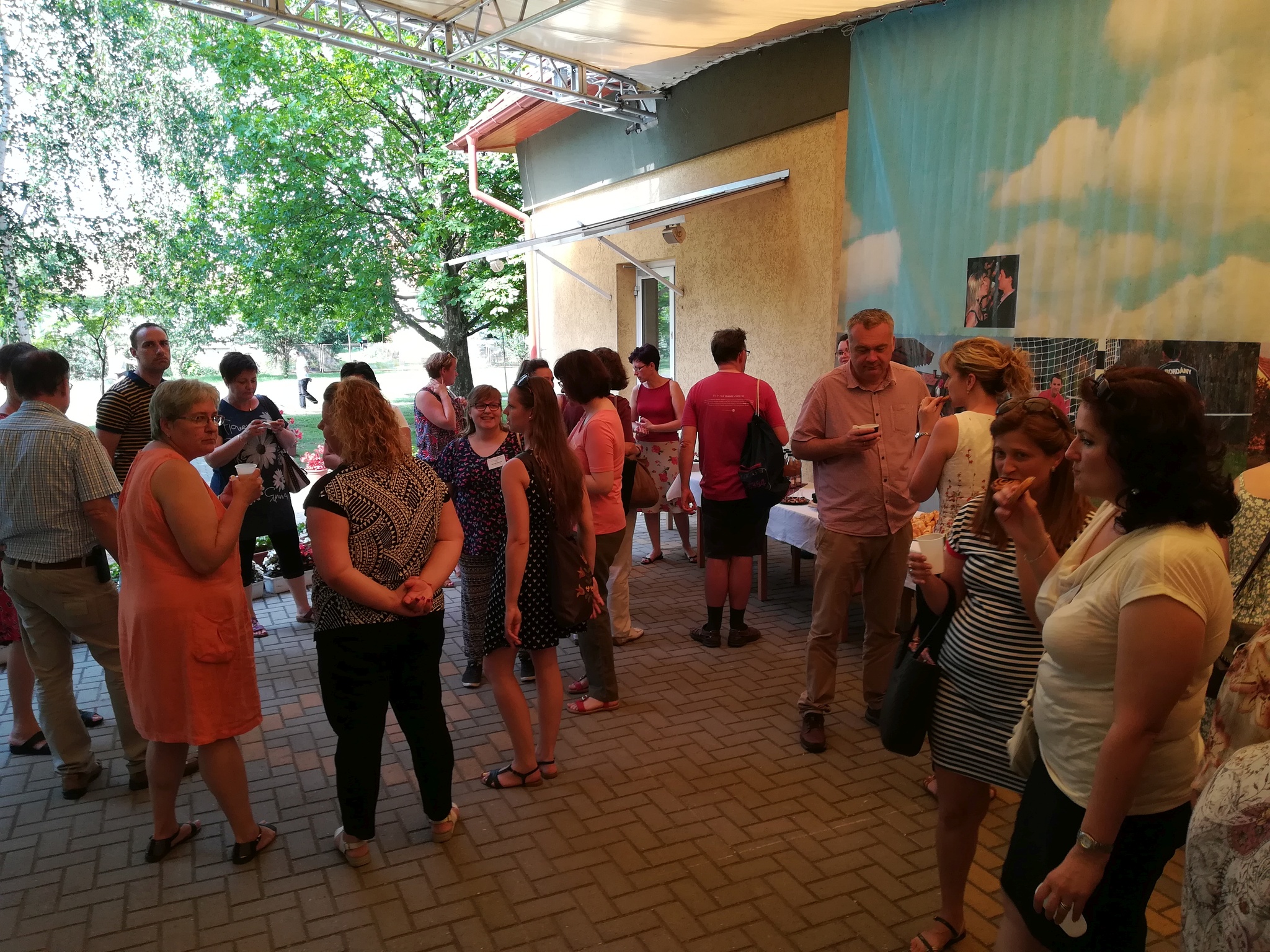 A vendéglátóink (reményeinknek megfelelően) kitettek magukért. Kellemes környezetben, a szabad ég alatt, magas fák árnyékában üdvözölhették egymást az idetérő könyvtárosok. A vendégfogadó kávé és a nagyon finom sütemények elfogyasztása a friss levegőn történt.