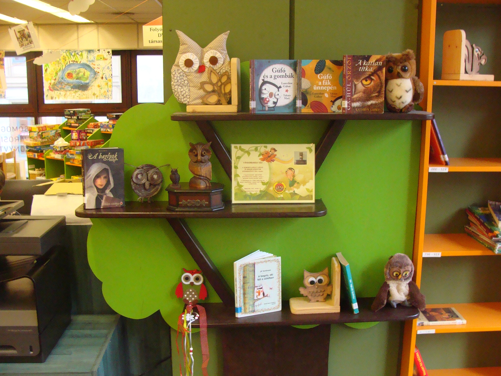 Az elmúlt évben nagy örömünkre (és nagyon megérdemelten) a Somogyi-könyvtár gyermekkönyvtárosainyerték el a Vándorbagoly-díjat. A díj nevében is rejti, hogy vándorol. Egy évig lakik egy gyermekkönyvtárban, majd egy szakmai nap keretében továbbrepül. Ez az időpont most érkezik el. Eddig díszítette a Somogyi-könyvtárat, de hamarosan elszáll. Hogy hova, azt még nem tudjuk. De ez is kiderül november 15-én a Somogyiban!